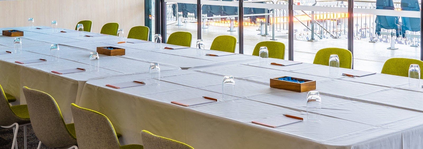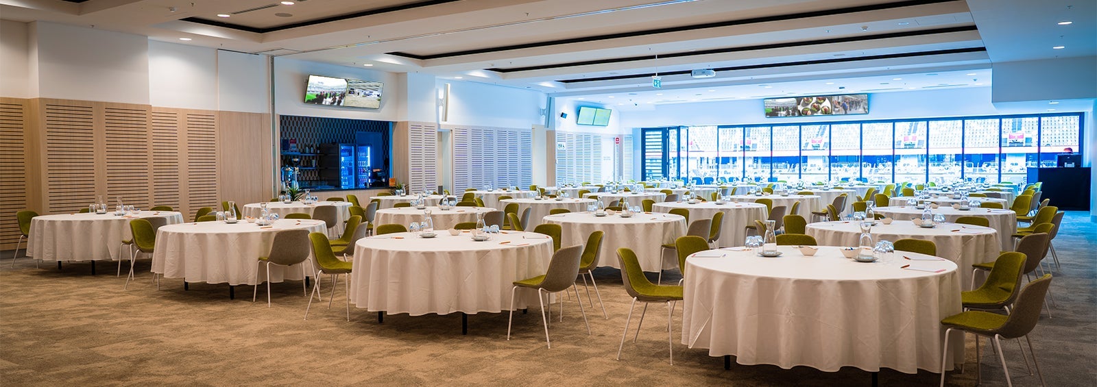 Featuring floor to ceiling windows that allow natural light to fill the room and give guests direct sight of the playing field.